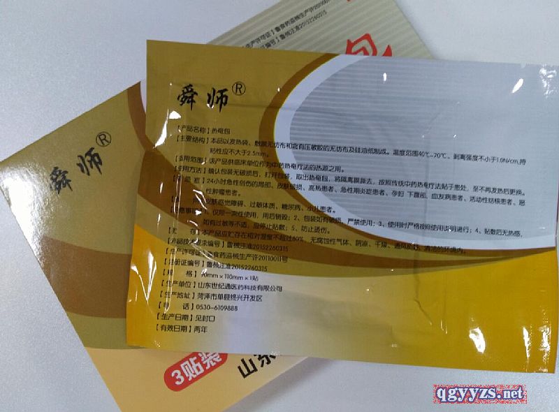 | 主要成分 | 热奄包由内装物和外袋组成,外袋由敷膜无纺布和含有压敏胶的无纺布及硅油纸制成。 |