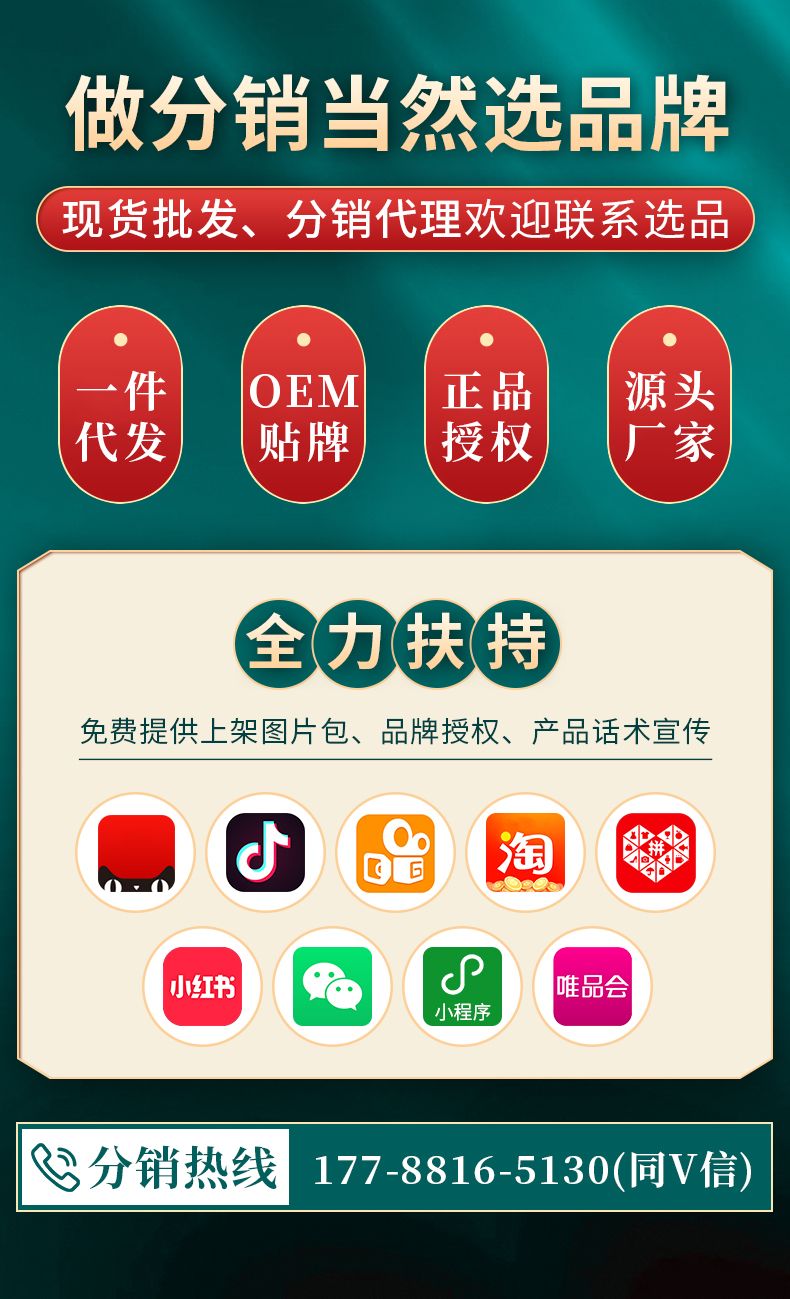 6、对微商、线上平台等电商渠道,公司可提供相关宣传资料,销售资质,品牌授权等服务。