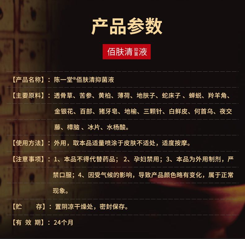 | 产品名称 | 陈一堂佰肤清抑菌液 |