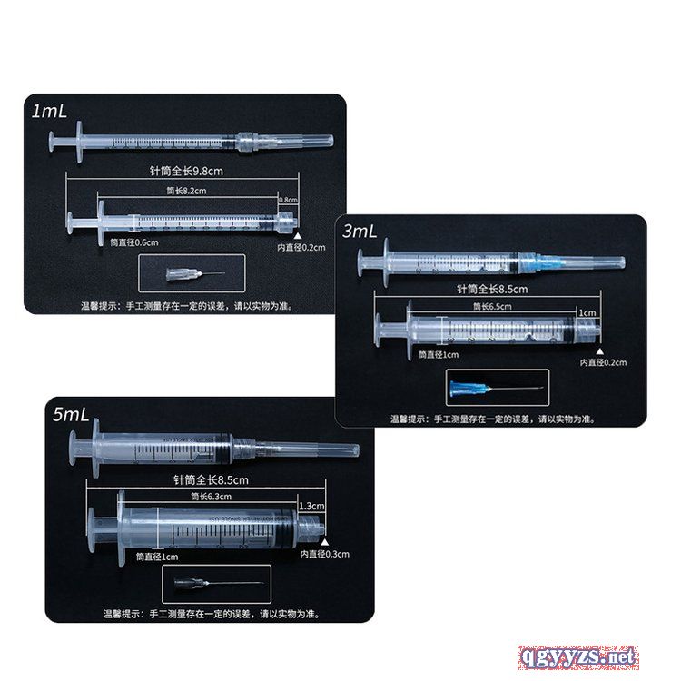 | 产品规格 | 1ml、2ml、2.5ml、3ml、5ml、10ml、20ml、25ml、30ml、50ml;注射针 |