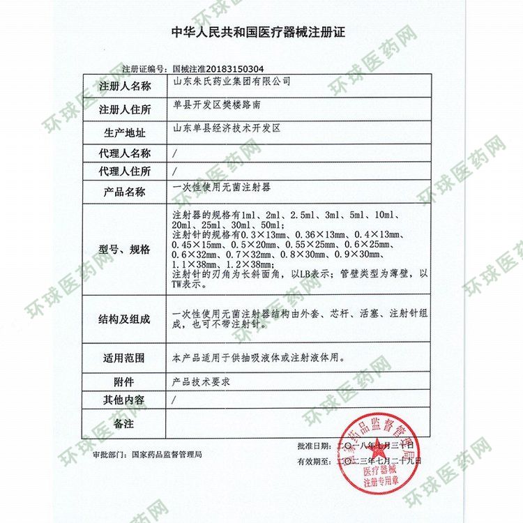 | 补充说明 | 规 格 U-40(公称容量:0.5mL、1.0mL) U-100(同前)中标:新疆碦什、甘肃省 挂网:广东省、湖北省、重庆市、宁夏回族自治区 出口资料: 一:SGS检测报告1mL无菌注射器中文.pdf 二:器械产品检测报告器械产品检测报告 三:欧盟ce自毁注射器DOC_1.Jpeg 配药用注射器 DOC_1.Jpeg 无菌注射器DOC(3).pdf 四:市局自由销售证书无菌注射器.jpg |
