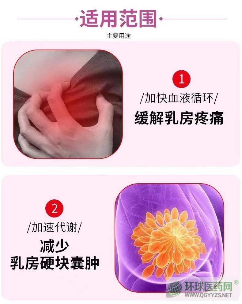 | 产品用途 | 适用于乳腺增生,乳房结节,硬块,肿胀疼痛等不适的亚健康人群。 |