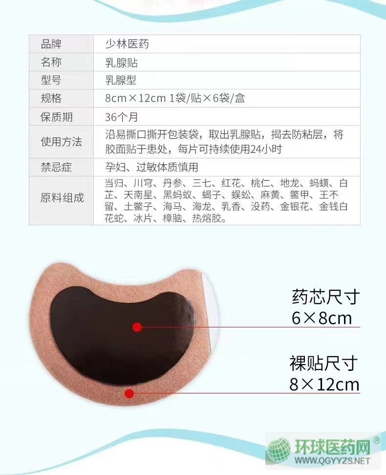 | 使用方法 | 使用前温水清洁贴敷部位,直接贴于乳房不适部位,每贴用1-2天。 |