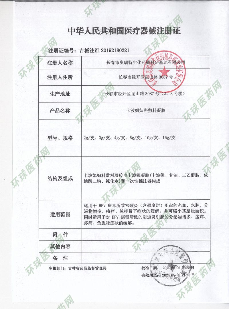 | 产品名称 | 卡波姆妇科敷料凝胶 |