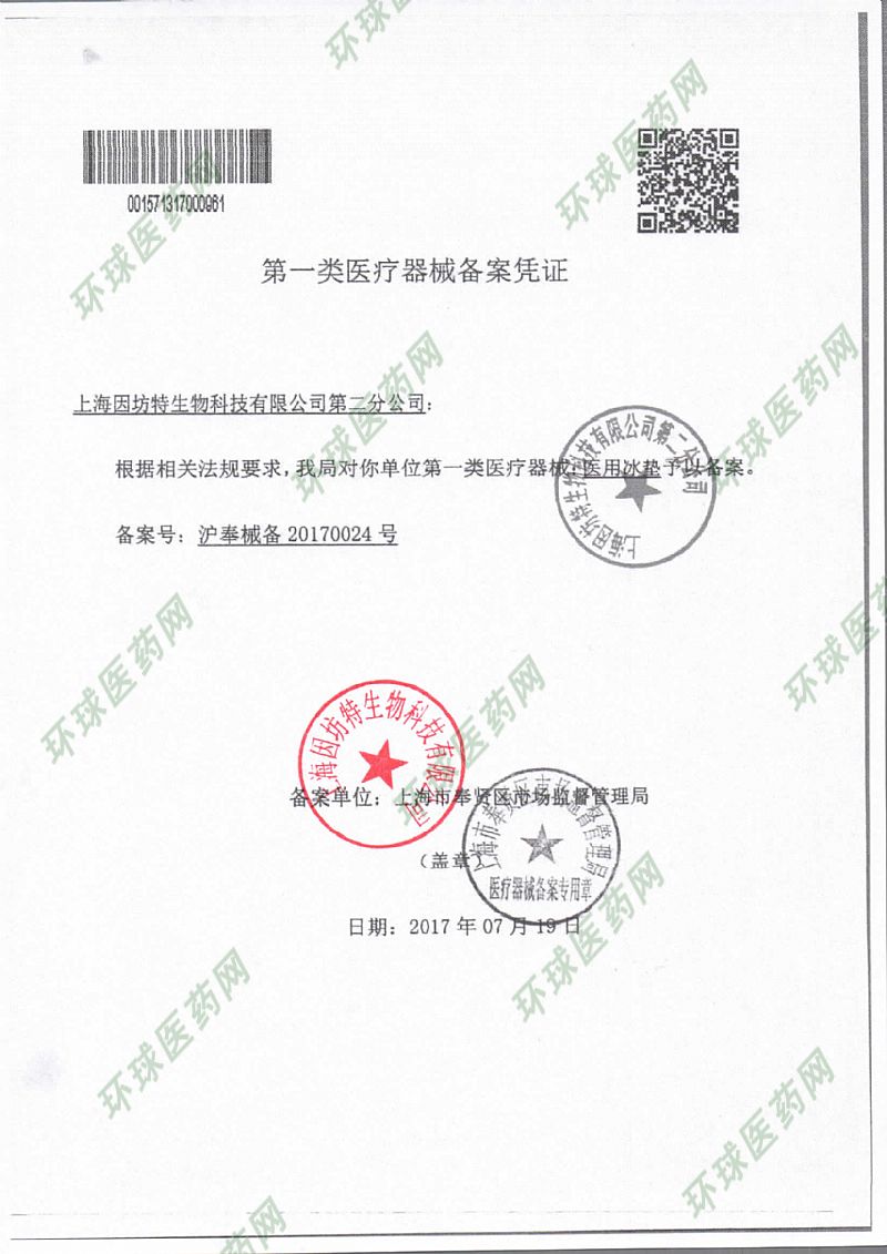 批准文号: 沪奉械备20170024号 【验证真伪】