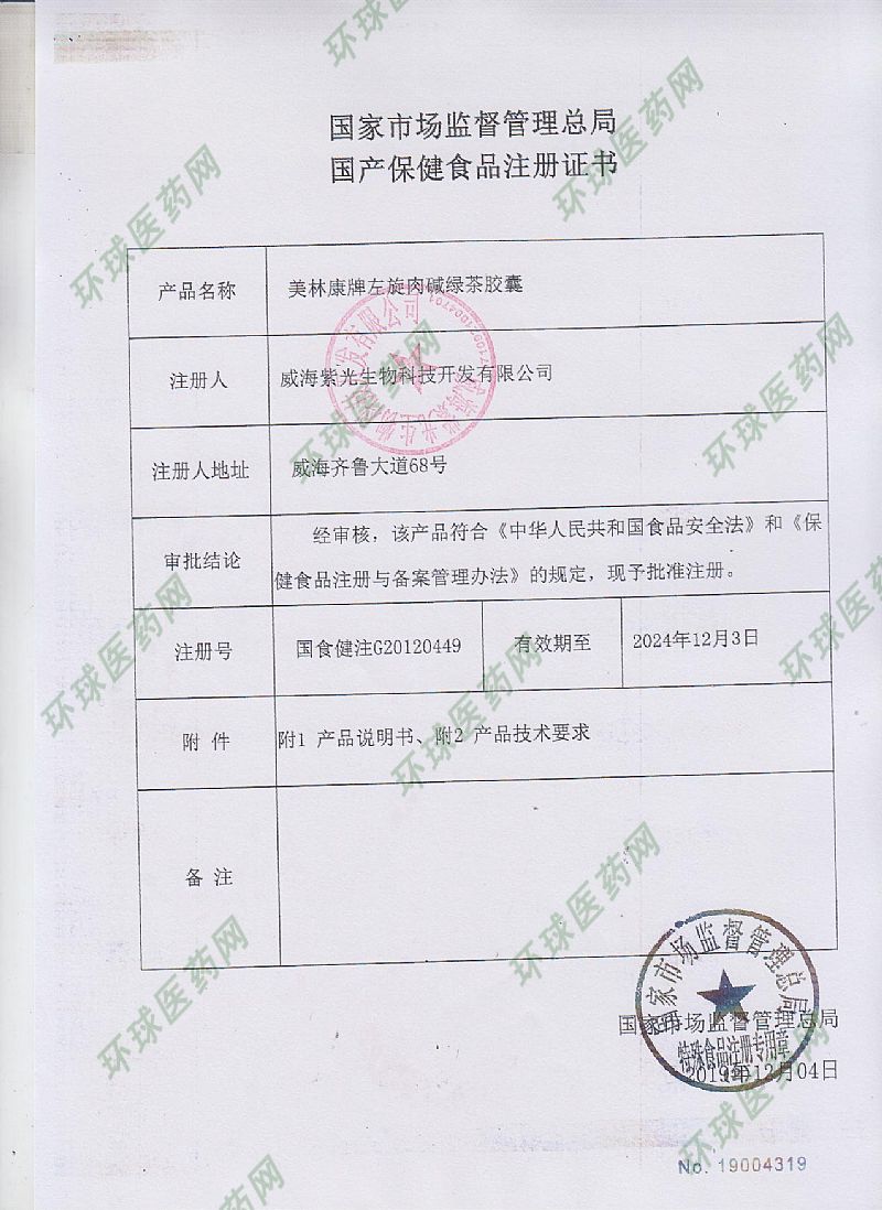 | 英文名称 | Mei Lin Kang Brand L-carnitine Green Tea Capsules |