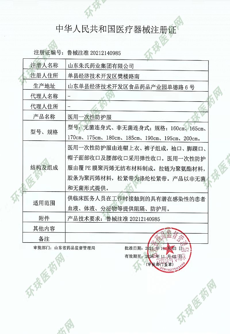 | 产品用途 | 供临床医务人员在工作时接触到的具有潜在感染性的患者血液、体液、分泌物等阻隔、防护用。 |