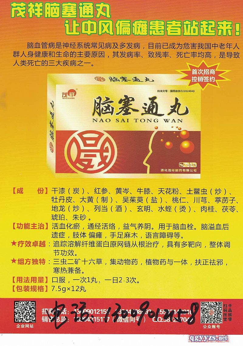 | 功能主治 | 活血化瘀、通经活络、益气养阴,用于脑血栓,脑瘀血后遗症,肢体偏瘫,手足麻木,语言障碍等。 |