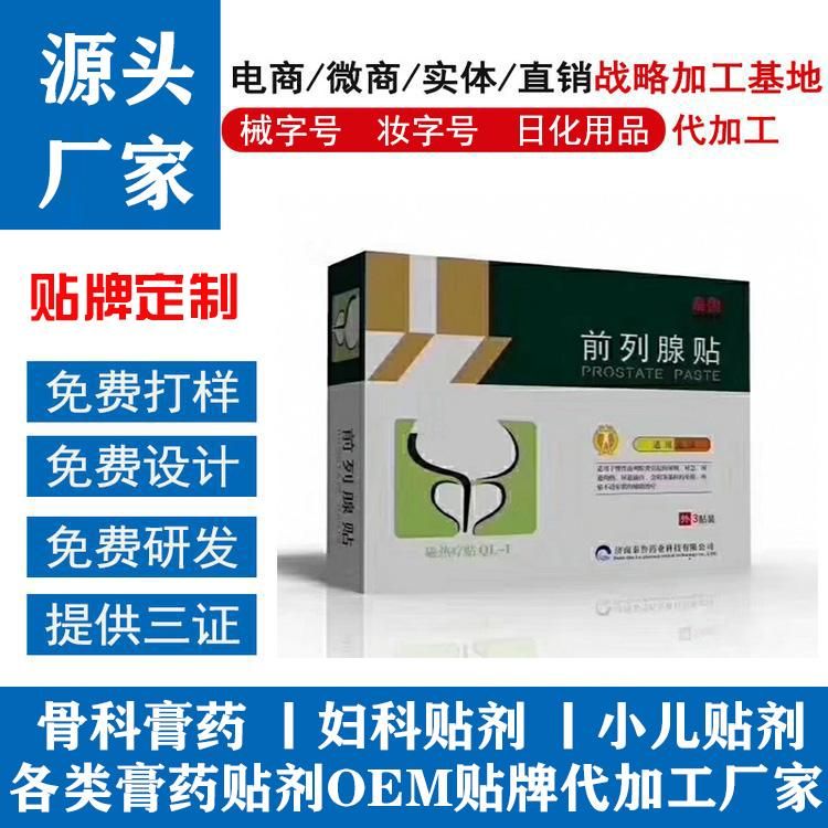 | 产品卖点 | 前列腺贴医疗就选,生产周期短,发货速度快,售后服务完善,文号齐全,品质**,可贴牌定制,设计,生产,运输一条龙服务。 |