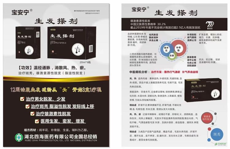 | 产品卖点 | 中药生发外用搽剂,零挂网治脱发生发,减龄从“头”开始 |