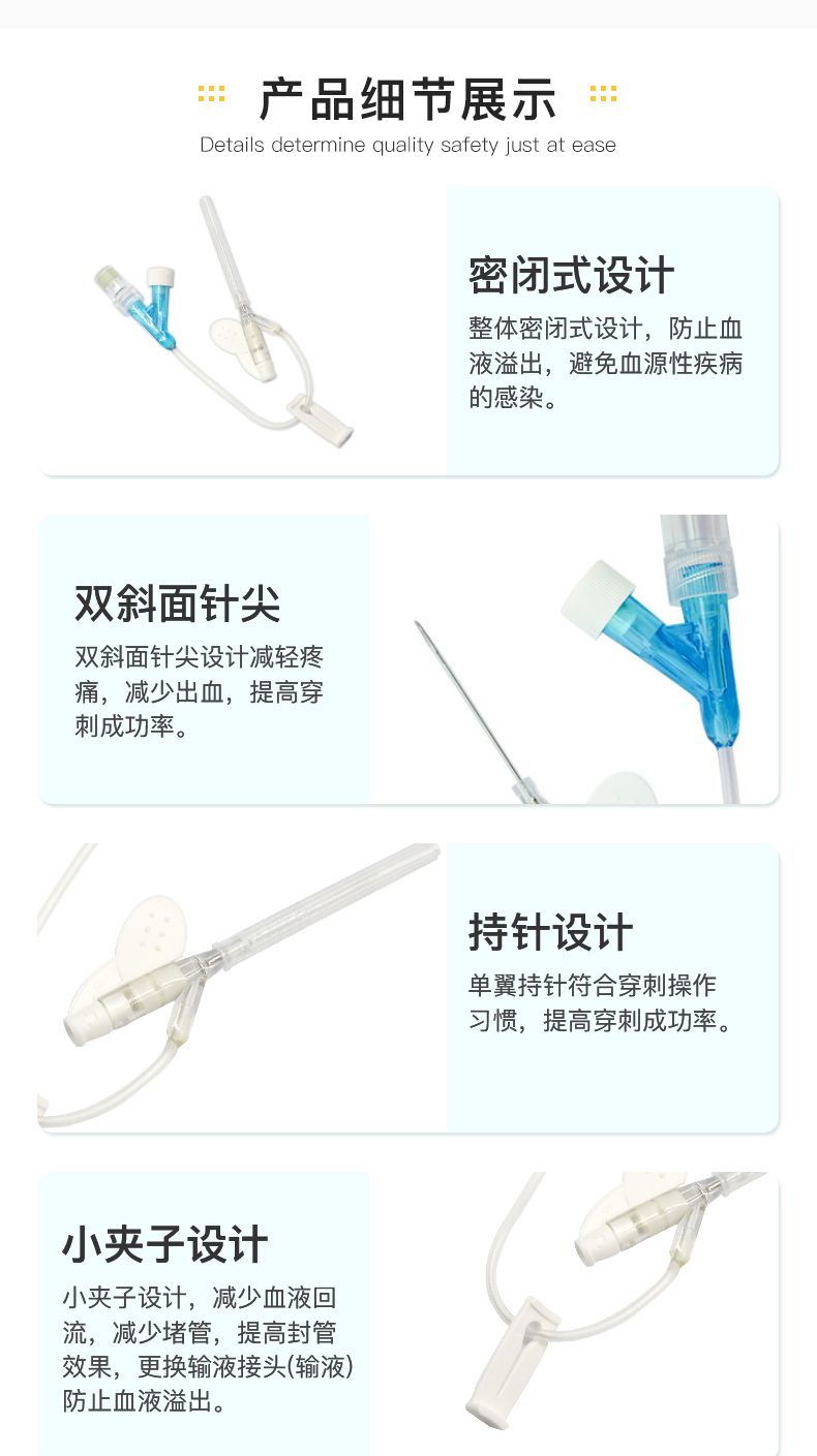 | 产品卖点 | 又称套管针,由于操作简单,使用方便、可减少反复穿刺的痛苦,还有利于临床用药和紧急抢救,并减轻了护士的工作量,已广泛地用于临床,效果满意。但如果临床操作技术不当及留置后护理不当,可造成不必要的痛苦。 |