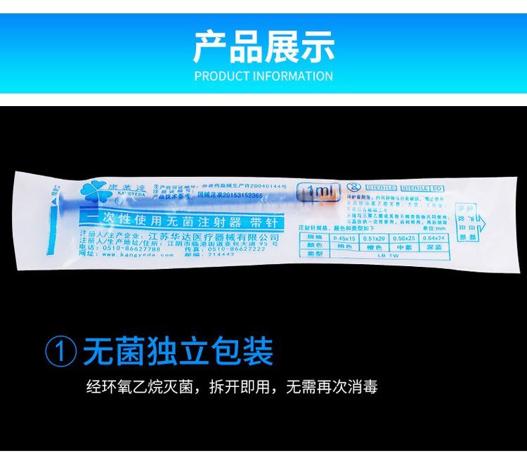东贝1ml一次性医用灭菌直口注射器整箱发货一次性