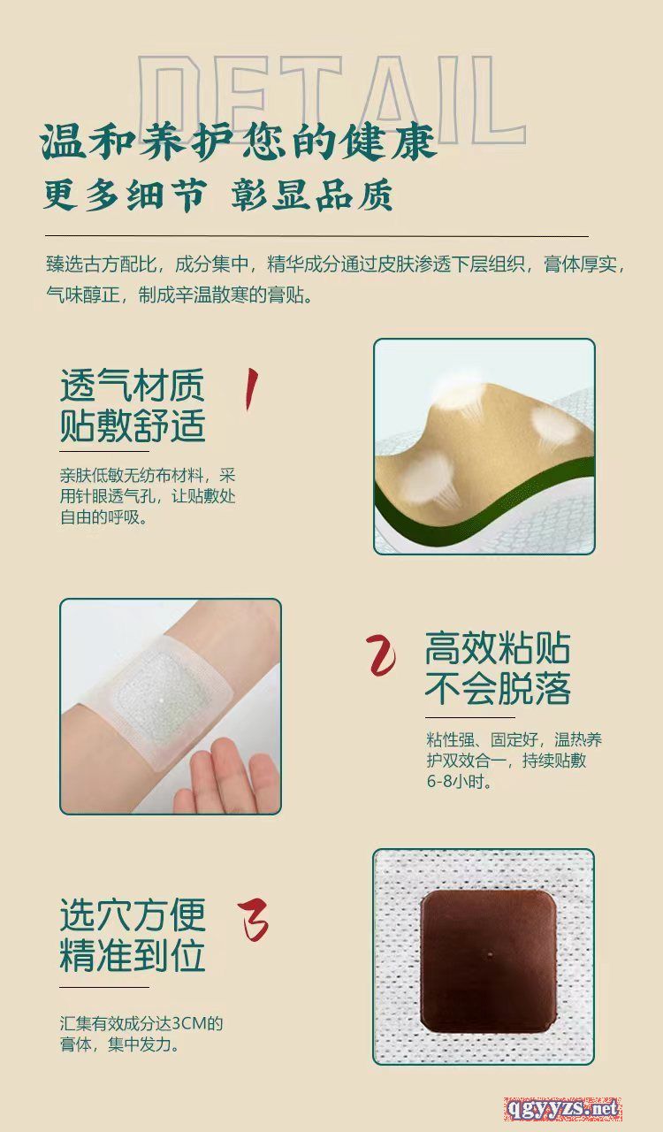 | 作用机理 | 穴位贴敷治疗贴的压敏胶布剥离强度不小于1.0N/cm,持粘性应不大于2.5mm,远红外发射波长范围8μm—15μm,法向比辐射率≥75%。 |