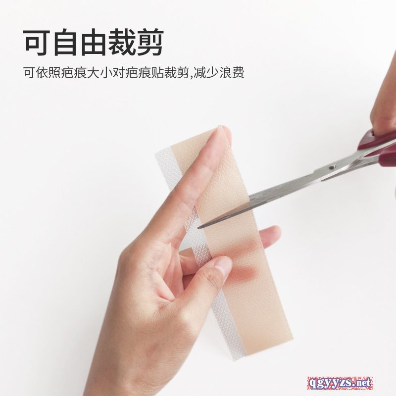 | 使用方法 | 1、打开包装盒,将硅凝胶膜覆盖在体表疤痕处或依疤痕大小、形状,剪裁后敷贴使用,确保敷料超过伤口边缘1厘米。(若疤痕面积较大可用数张同时粘贴,边缘须对齐)。 2、小心揭去粘胶面贴纸,将有粘性的一面贴在干净的疤痕上与之贴敷紧密,在有疤痕的关节部位、睡眠或大运动量时可用薄的弹性纱布包扎固定。 |