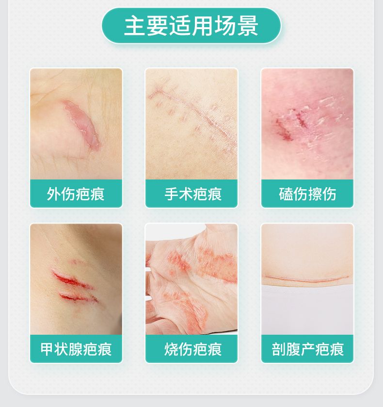 | 产品用途 | 适用于抑制体表外伤、烧伤、手术原因引起的增生性疤痕。 |