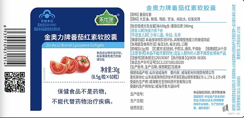 | 英文名称 | Jin Ao Li Brand Lycopene Softgels |