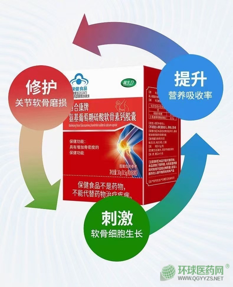 | 主要成分 | 每100g含:钙12.5g、硫酸软骨素10.0g、D-氨基葡萄糖盐酸盐30.0g |