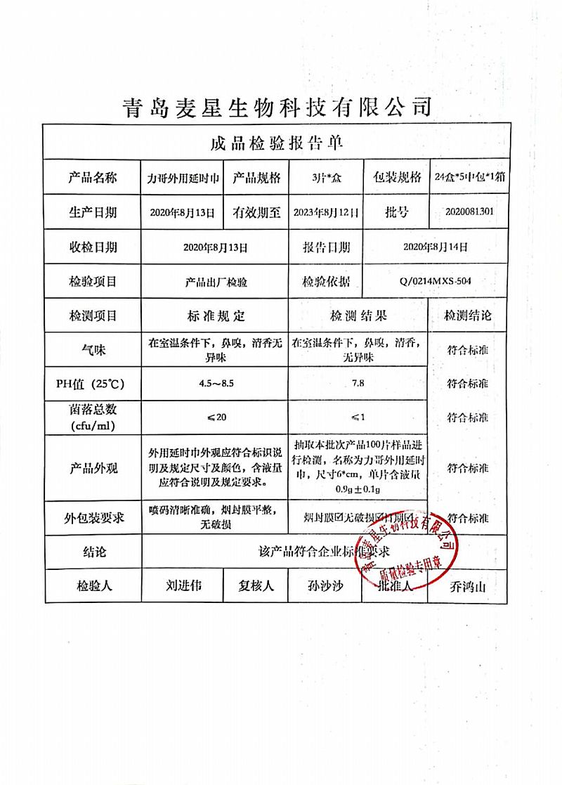 | 产品名称 | 力哥男士湿巾 |