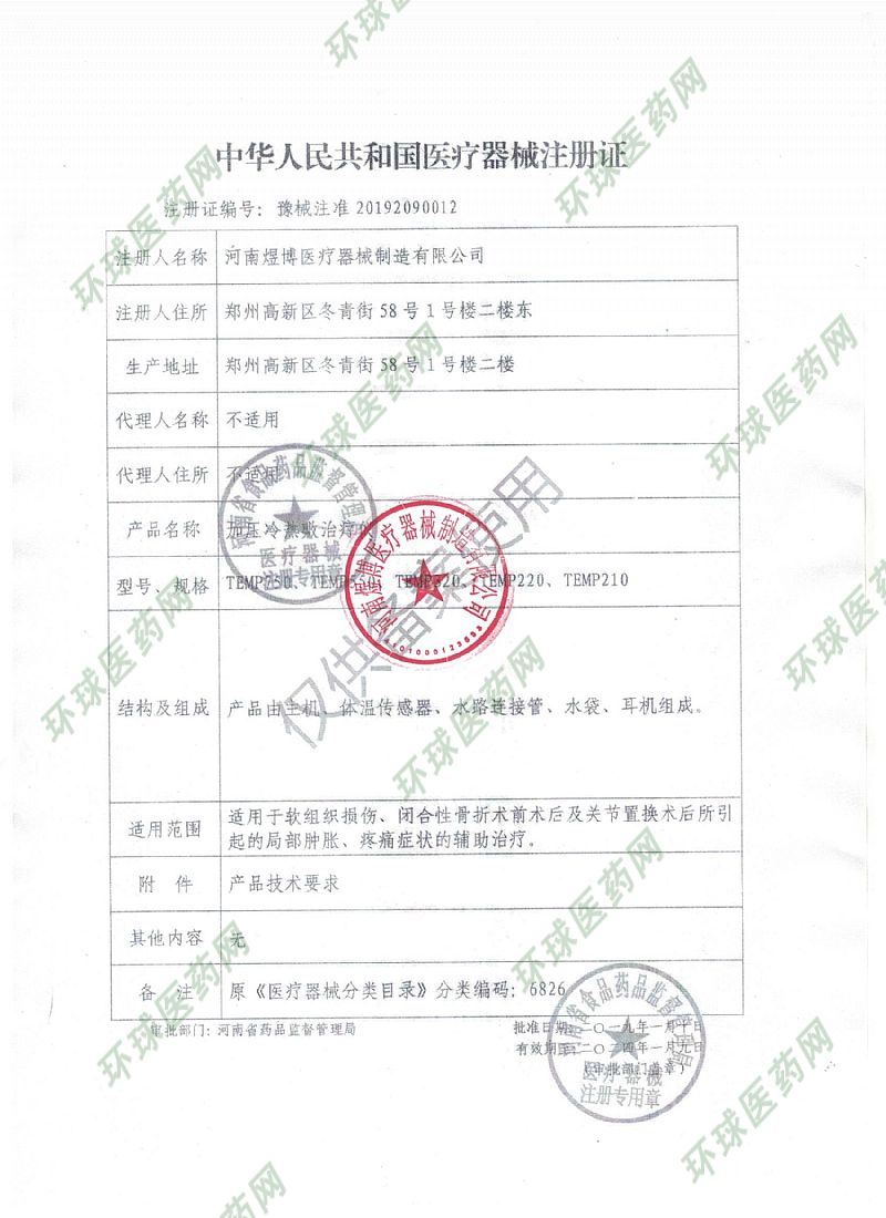| 补充说明 | TEMP220型全自动加压冷热敷治疗系统采用航天级半导体温控技术,结合全自动加压循环冷热敷治疗原理,可满足临床病患围手术期的镇痛、消肿、消炎、减渗等整体治疗方案需求。 全自动加压冷热敷治疗系统,以其多功能多样化治疗方案、先进半导体制冷精准温控技术。 产品功能 ★全自动加压冷敷功能 符合急性损伤后处理新标准( POLICE疗法) 能有效减轻疼痛、肿胀、渗出,抑制炎症并发等 助力ERAS治疗方案,促进患者快速康复 ★全自动加压热敷功能 促进局部血液循环、代谢,利于伤口愈合 缓解肌肉痉挛,促进消肿、炎性物质吸收 可选配中药热敷,促进患者快速康复 ★多模式水压加压功能 采用间断、多模式脉动水压加压改善微循环,加速肢体组织液回流 加速消肿,促进患者快速康复 预防静脉血栓( VET )的形成 ★音乐疗法功能 利于人体分泌活性物质,调节神经传导,提高大脑皮层兴奋性 加速消肿,促进患者快速康复 预防静脉血栓(VTE)的形成 ★体温(选配)、水压监测功能 实时检测体温、水温、脉动水压、水位, 提高治疗精准性 多重保护,提高治疗可靠性 适应范围 ★各类骨折、骨创伤、骨肿瘤等骨科疾病,骨科各类手术的术前准备和术后治疗。 ★各类关节镜、椎间孔镜及脊柱矫形、固定术后治疗。 ★各类急性软组织疼痛的康复治疗 ★人工膝关节、髋关节等假体置换术后治疗。 ★急性软组织挫伤,急性滑膜炎,各类运动型损伤。 ★各类术后功能训练预防肿痛治疗,康复锻炼治疗。 产品特点 ★技术:航天级半导体制冷技术,清洁能源,可靠免维护 ★精准:精准温控技术,温度误差±0.5C ★高效:液体可循环,冷热量交换效率高 ★体验:人体解剖学设计冰囊 ,与关节贴合性强,冷热敷效果更优 冰囊采用医用高分子材质,可消毒重复使用 冰囊可透视X光线,材质柔软,舒适度更好 ★支持:多治疗方案可选 ,根据病患制定针对性治疗措施 可选中药包配合治疗,促进患者快速康复 ★可靠:缺水、 堵塞、水温异常等报警,多重防护 ★简易:触屏设计,界面简单清晰,极易操作 ★操作:普通人员装机培训即可操作,无需专业证书 ★认证:ISO13458、 ISO9001 |