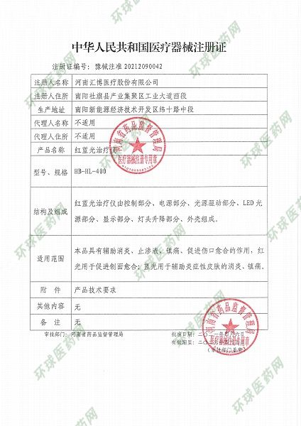 | 主要成分 | HB-HL-400由主机、电极线、灯头和适配器组成。 |