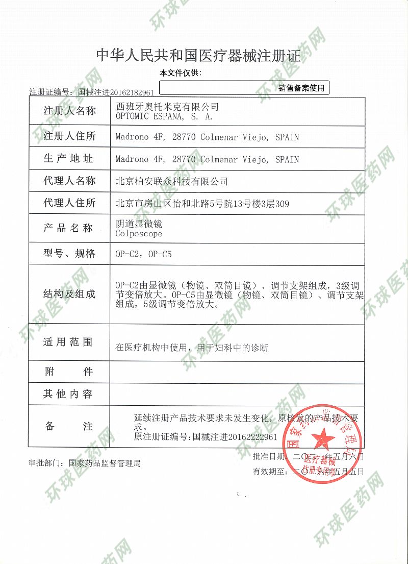 批准文号: 国械注进20162222961 【验证真伪】