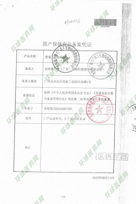 | 运输包装 | 60g(1.0g/粒X60粒)*100盒/件 |