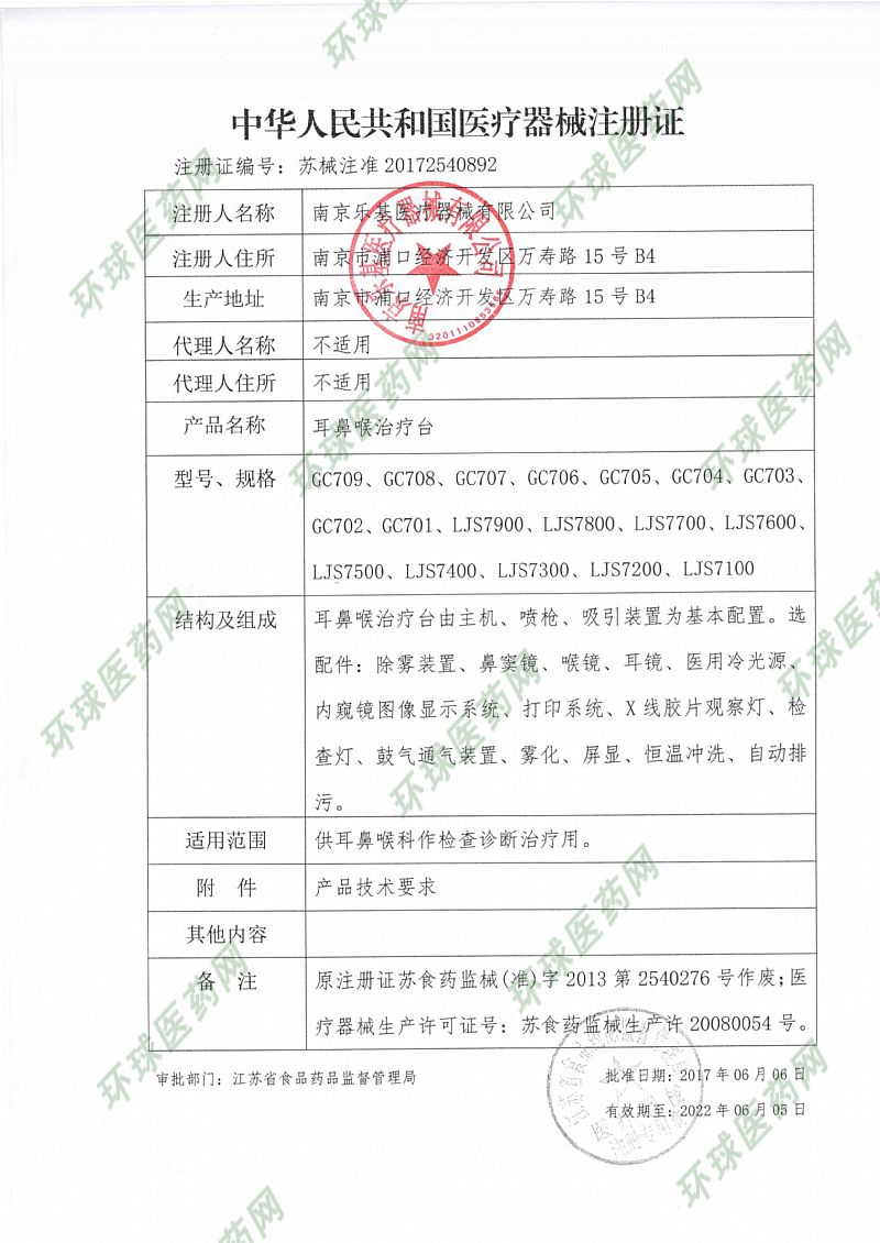 | 补充说明 | 乐基医疗是一家专业从事医疗仪器的研发、生产和销售的高科技企业,主营设备有:麻醉机、麻醉呼吸回路消毒系统,麻醉废气收集系统,有创无创呼吸机,空气压缩机,全胸腔高频脉冲排痰系统,振动排痰机,耳鼻喉综合治疗台和内窥镜系统等等。 |