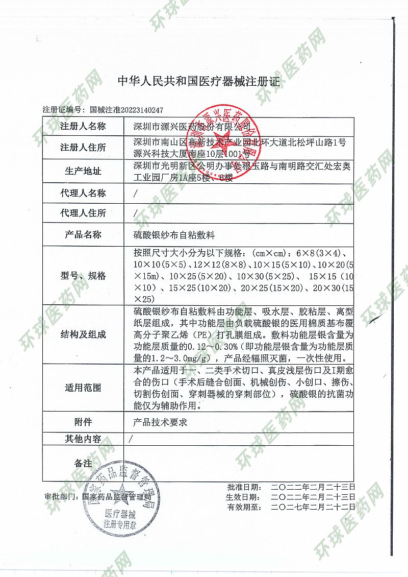 | 产品用途 | 本产品适用于一、二类手术切口、真皮浅层伤口及I期愈合的伤口(手术后缝合创面、机械创伤、小创口、擦伤、切割伤创面、穿刺器械的穿刺部位),硫酸银的抗菌功能仅为辅助作用。 |