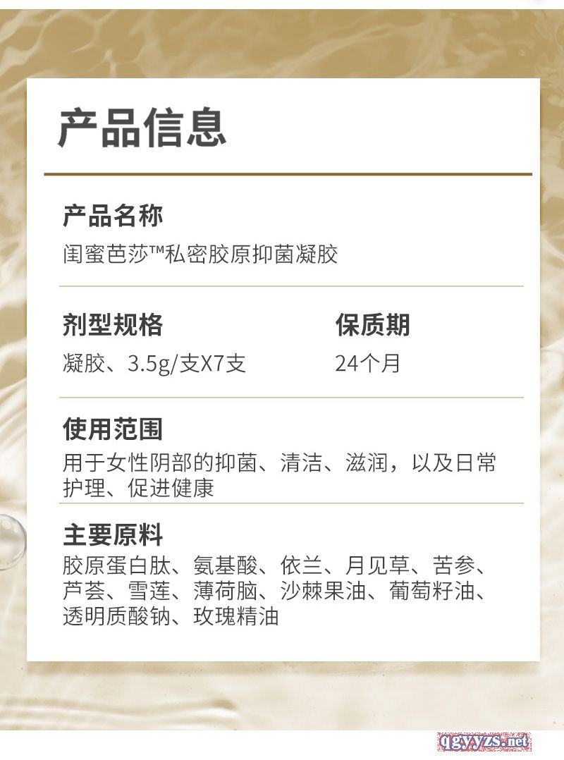 | 产品名称 | 闺蜜芭莎™;私密胶原抑菌凝胶 |