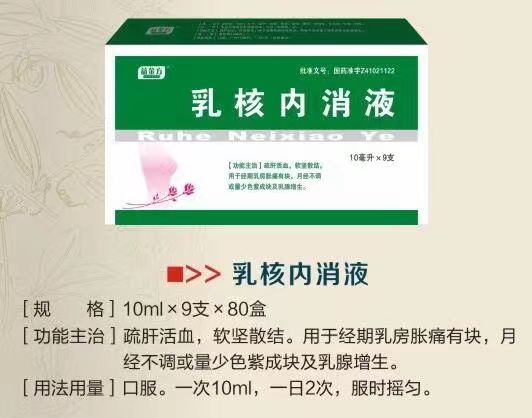 | 功能主治 | 疏肝活血,软坚散结。用于经期乳胀痛有块,月经不调或量少色紫成块及乳腺增生。 |