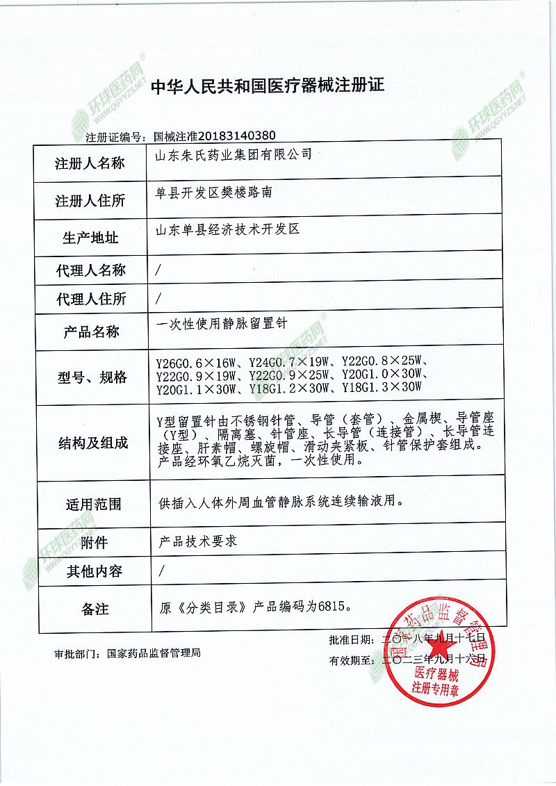 | 产品名称 | 一次性使用静脉留置针 |