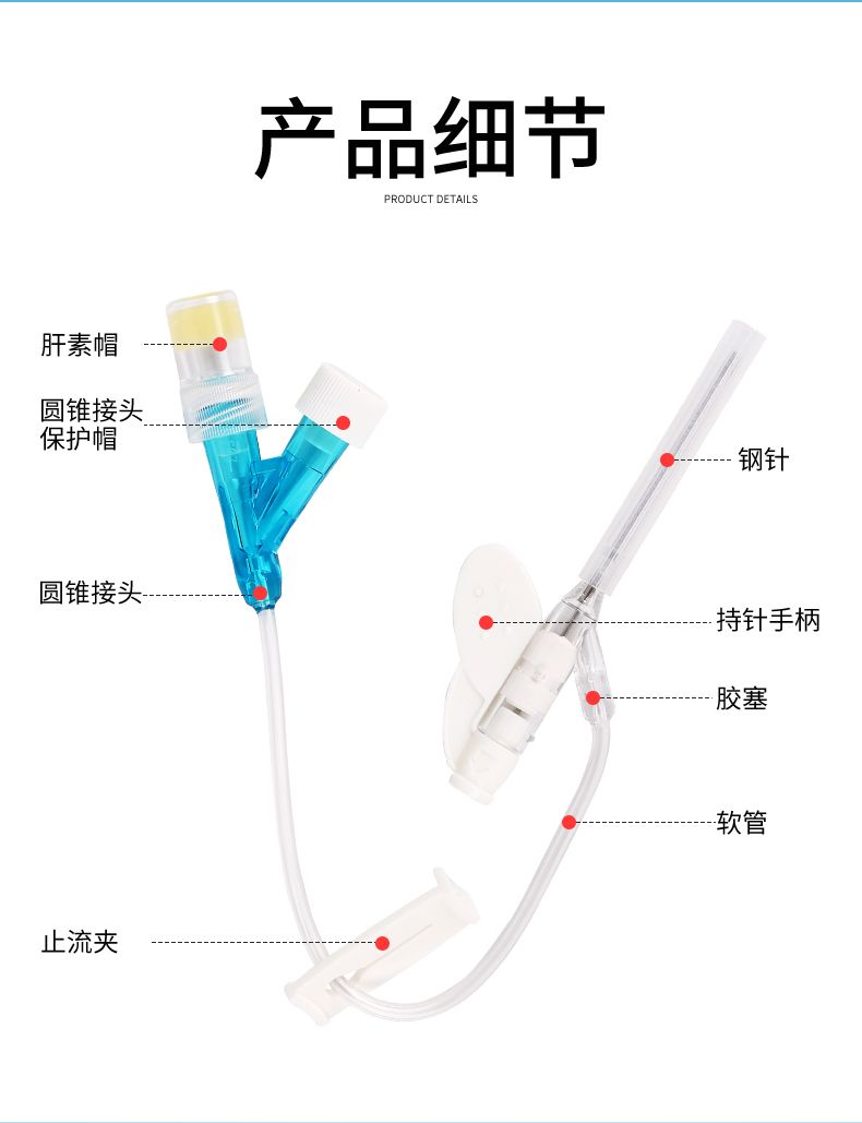 | 主要成分 | 蝶翼状、肝素帽、滑动夹紧板 |