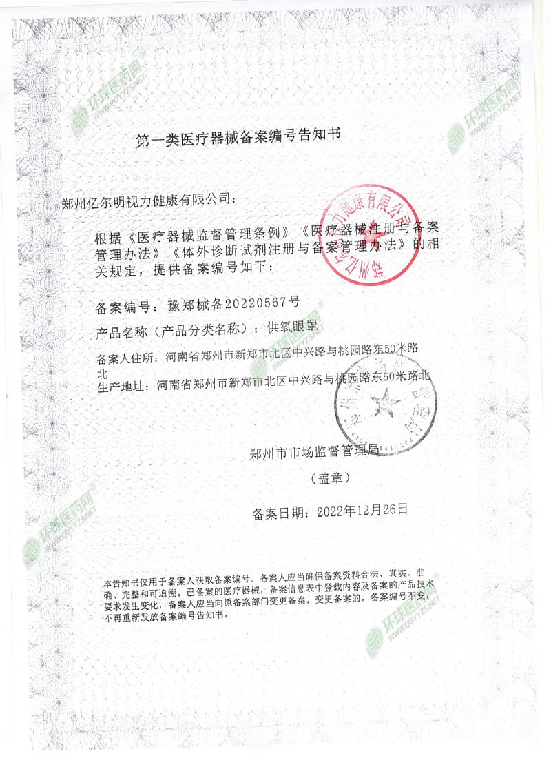 | 补充说明 | [有效期]24个月. [禁忌症]儿童应在成人监护下使用,眼外伤、眼底出血、视网膜脱落、急性眼病、青光眼、眼压过高、孕妇和过敏体质者禁用。 [贮存条件]密封、置阴凉干燥及儿童不易接触处保存。 注册地址:郑州高新技术产业开发区冬青街10号 生产地址:新郑城北开发区育才路中段 |