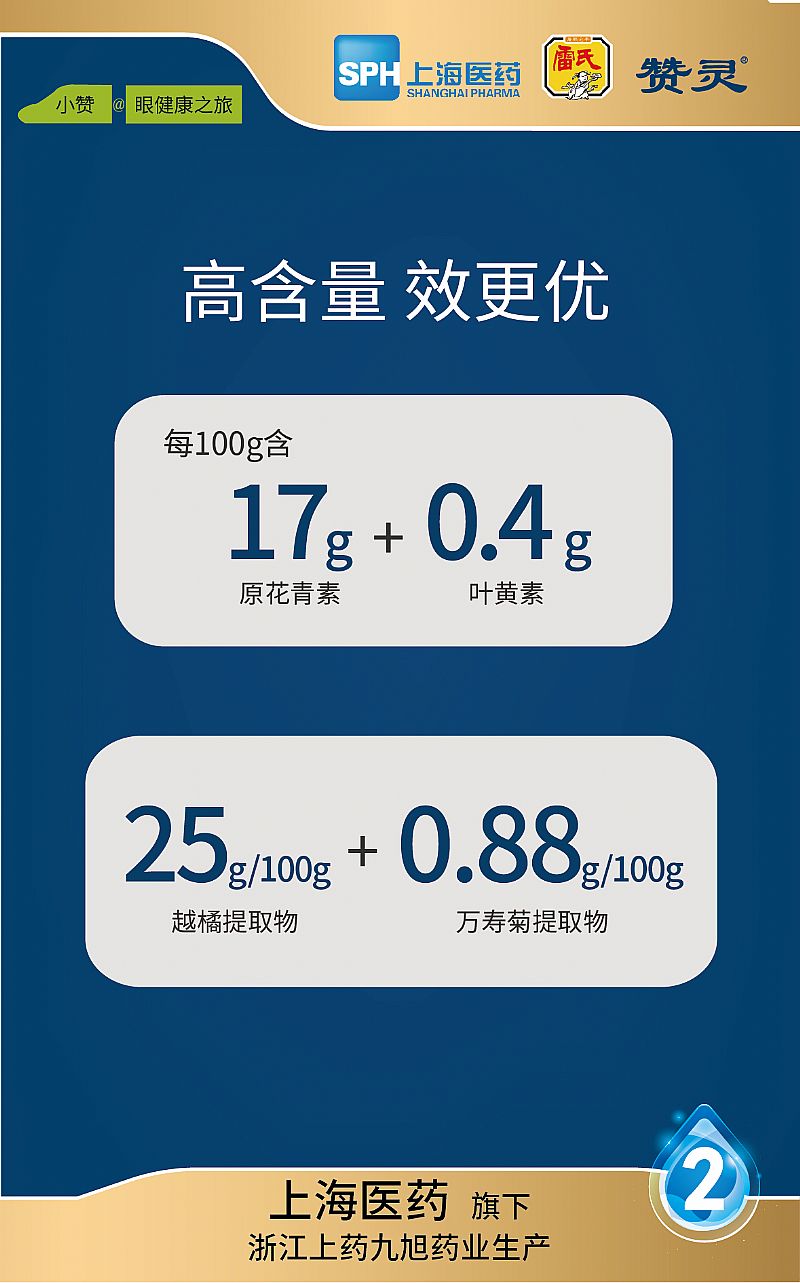 | 作用机理 | 叶黄素的作用:保护眼睛不受光线损害,延缓眼睛的老化及防止病变 原花青素作用:眼球滋润,延缓或抑制白内障,延缓青光眼,对糖代谢及脂代谢有良好的调节作用,能够保护血管内皮细胞,减轻视网膜的水肿,营养视神经节细胞。 |