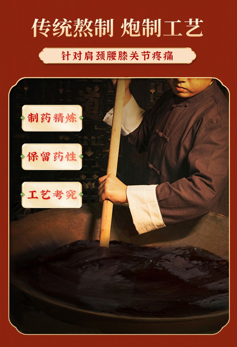 | 产品卖点 | 传统黑膏药,统熬制,制药精炼,炮制必不敢省人工。道地药材,科学配伍,多种中药材萃取成膏,更易吸收。适宜于缓解因风寒侵袭、劳损等引起的颈、肩、腰、腿及关节疼痛、酸麻等不适的亚健康人群。控销; |