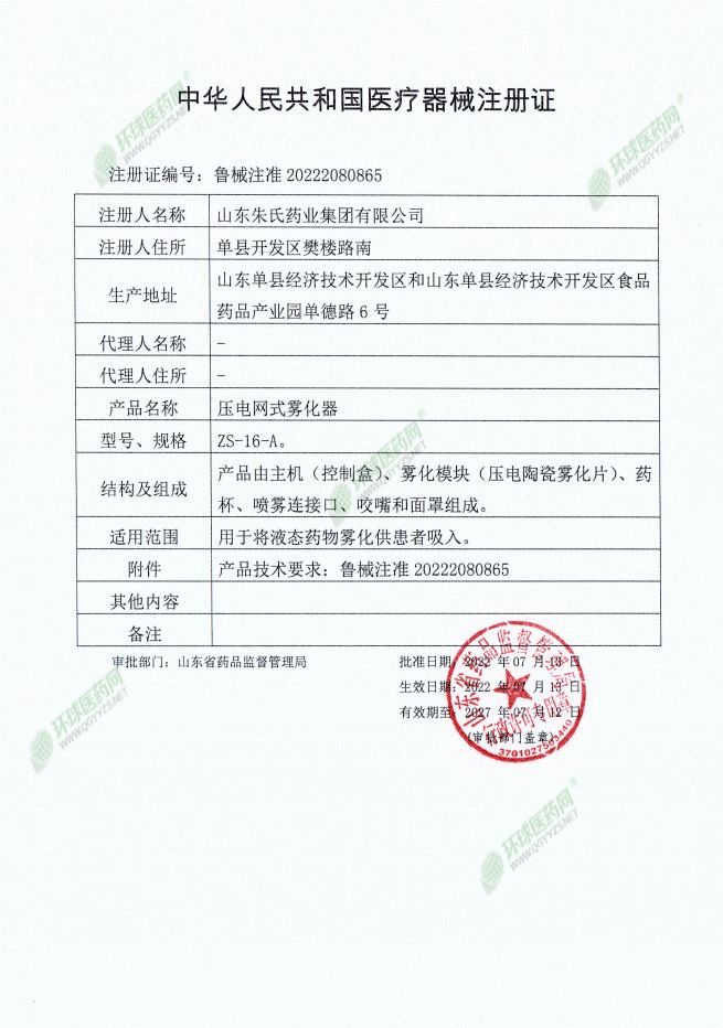 | 补充说明 | 压电网式雾化器由主机(控制盒)、雾化模块(压电陶瓷雾化片)、药杯、喷雾连接口、咬嘴和面罩组成。 |