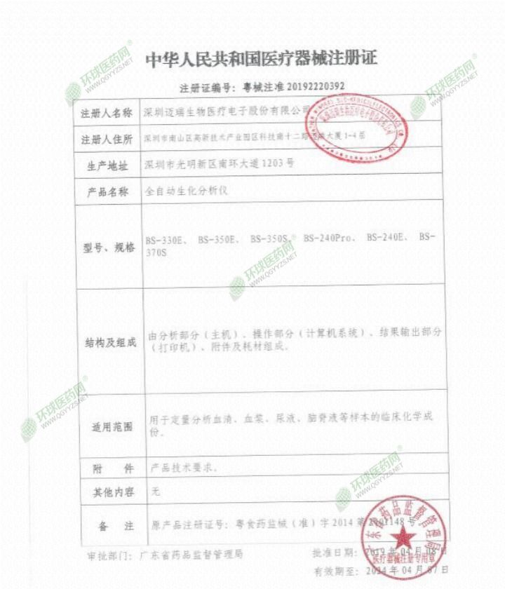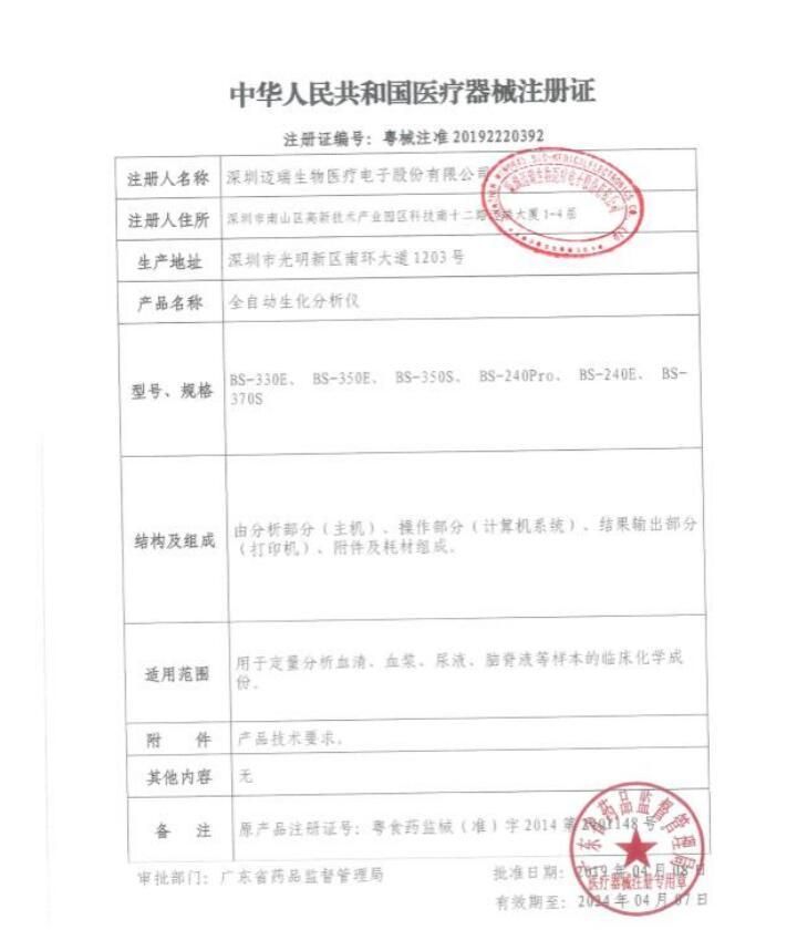 | 英文名称 | Mindray automatic biochemical analyzer BS-350S |