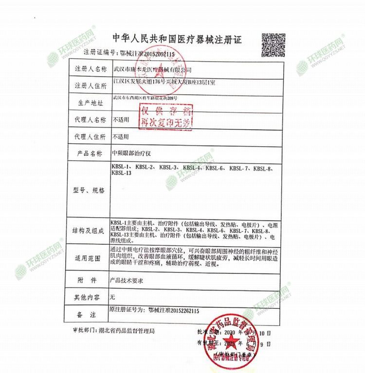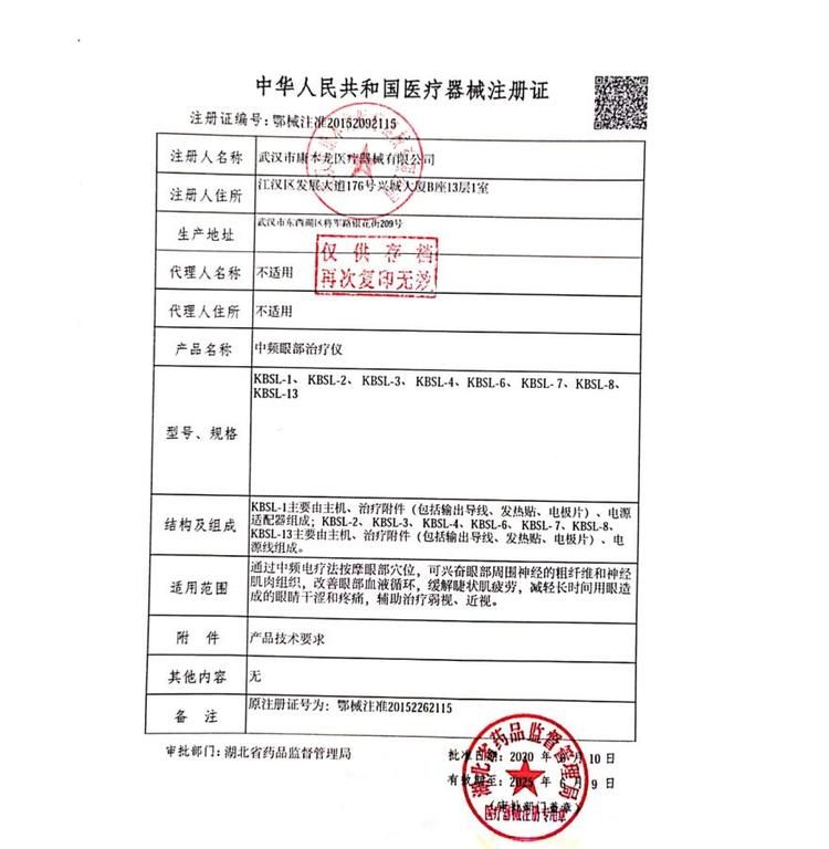 | 英文名称 | Kangbenlong Intermediate Frequency Eye Treatment Instrument KBSL-1 |