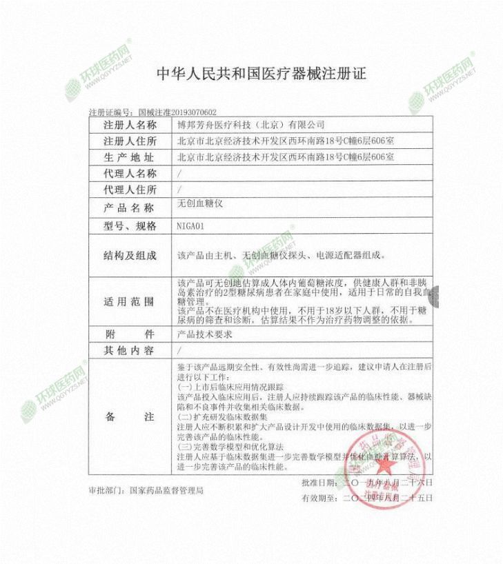 | 英文名称 | Bofangzhou noninvasive blood glucose meter NIGA02 |