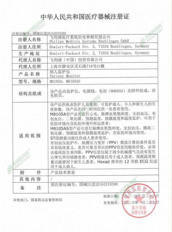 | 英文名称 | Philips Patient Monitor M8105A(MP5 |