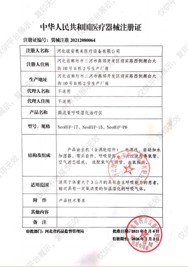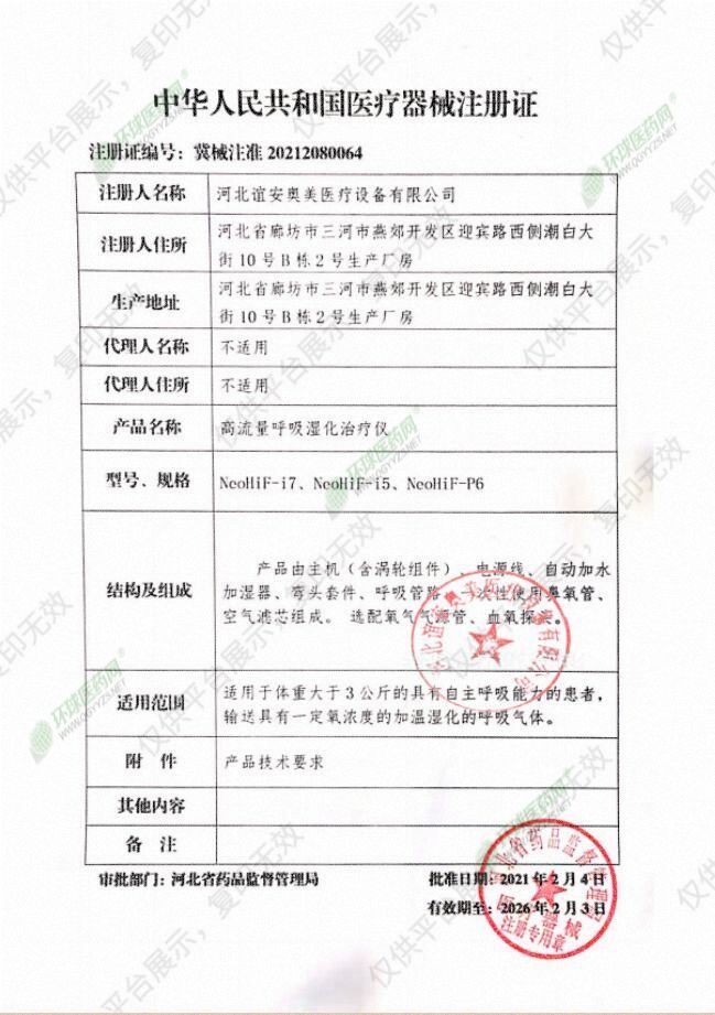 | 英文名称 | NeoHiF-i7, a high-flow respiratory humidification therapeutic instrument of Yi ’an. |