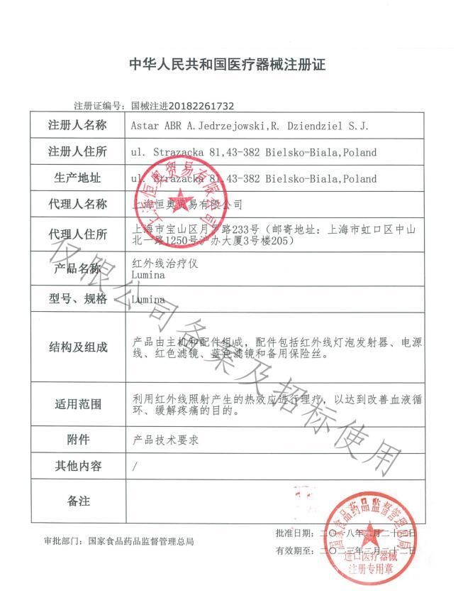 | 英文名称 | Hengao infrared therapeutic instrument Lumina |