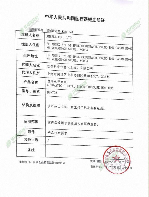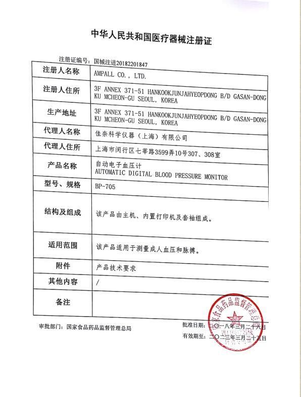 | 英文名称 | Jianai automatic electronic sphygmomanometer BP705 |