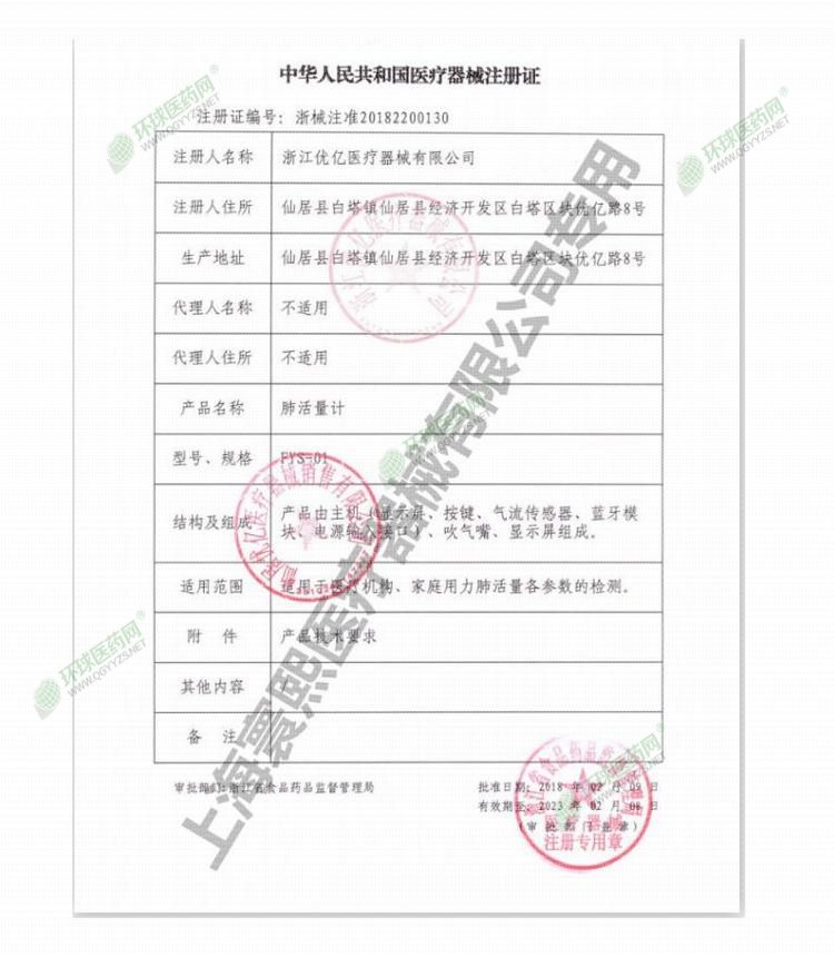 | 补充说明 | 道用品你机构、家庭用力肺活量各参数的检测 |