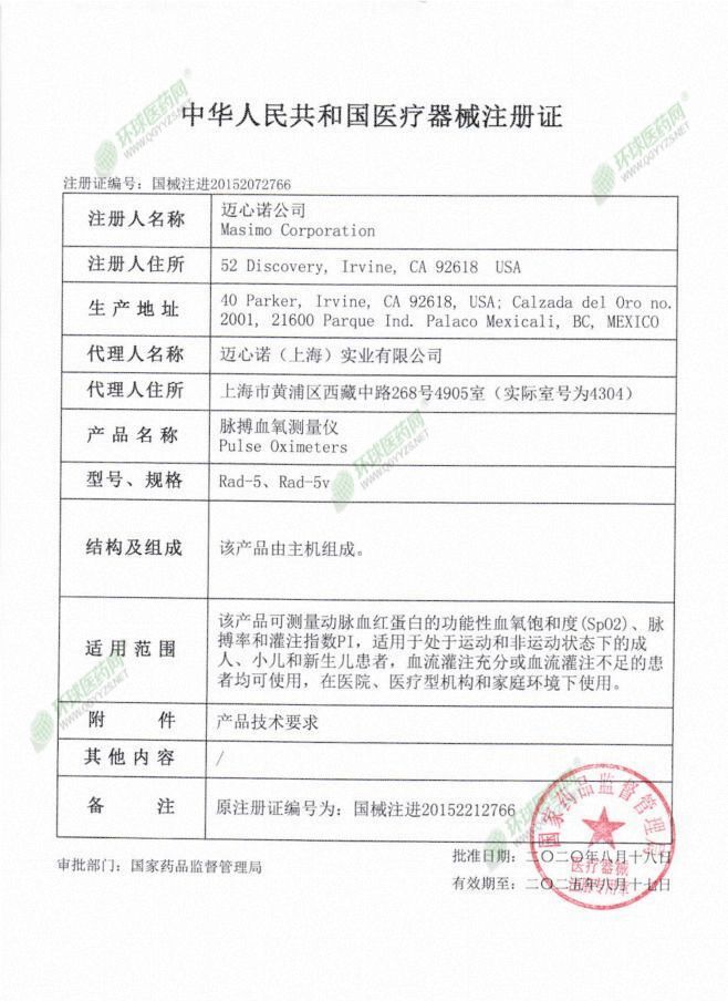 | 英文名称 | Mai Xin Nuo pulse oximeter Rad-5 |