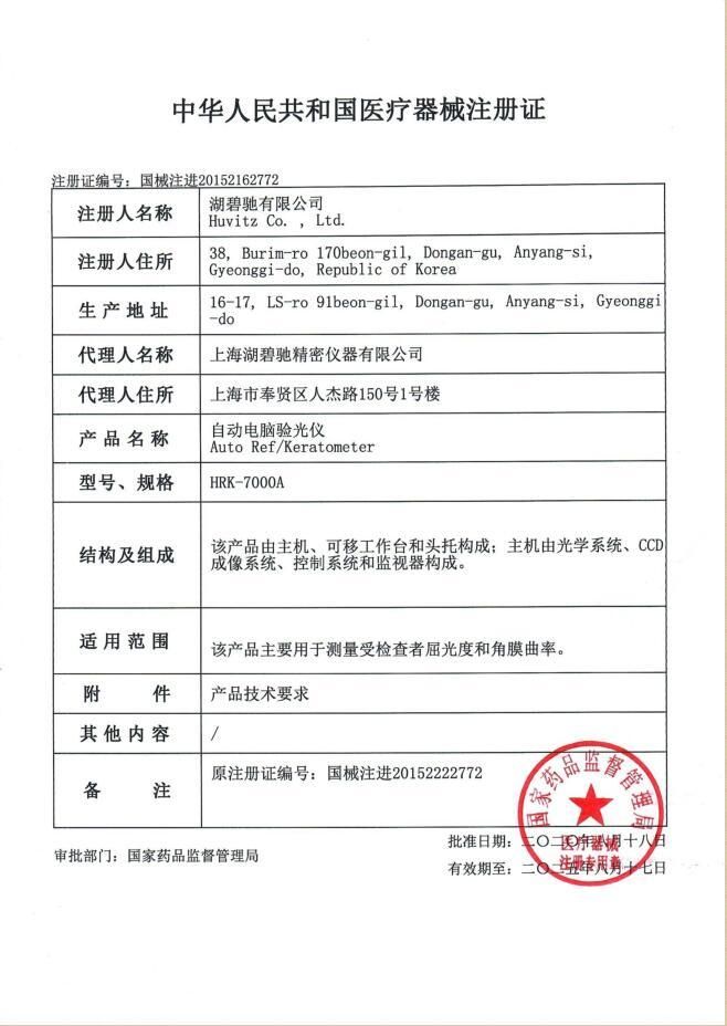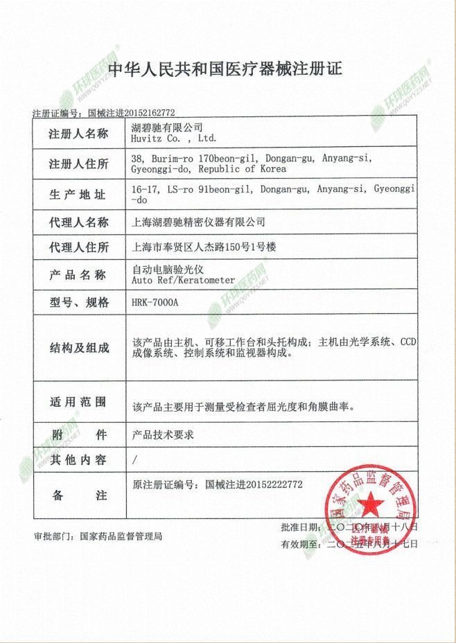 | 英文名称 | Hubichi automatic computer optometry instrument HRK-7000A |