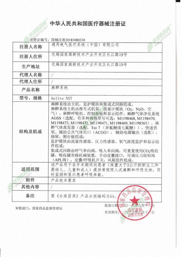 生产企业: 通用电气医疗系统(中国)有限公司