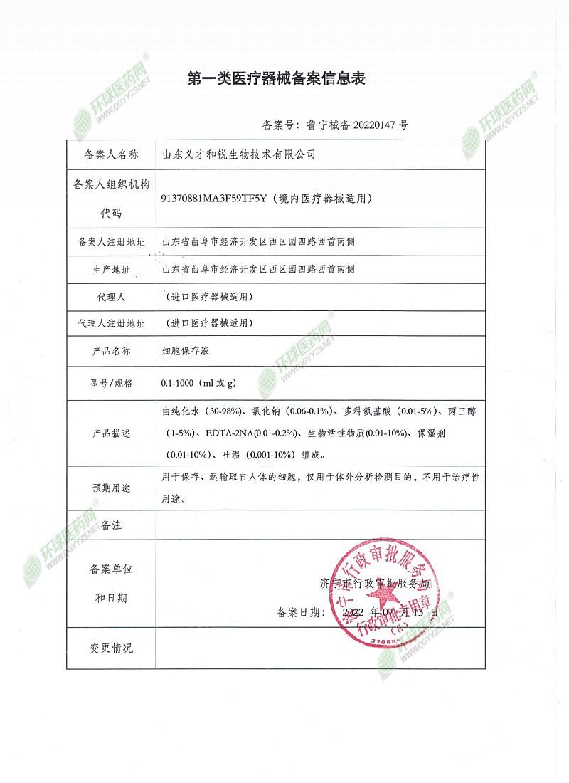 | 产品用途 | 用于保存、运输取自人体的细胞,仅用于体外分析检测目的,不用于治疗性用途。 |