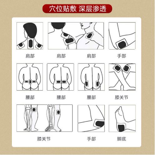 | 产品卖点 | 【预期用途】贴于人体穴位处,进行外力刺激。 【适用范围】本品针对阿是穴的刺激作用,对颈椎、肩周、腰椎、腿部等部位不适起辅助理疗作用。 |