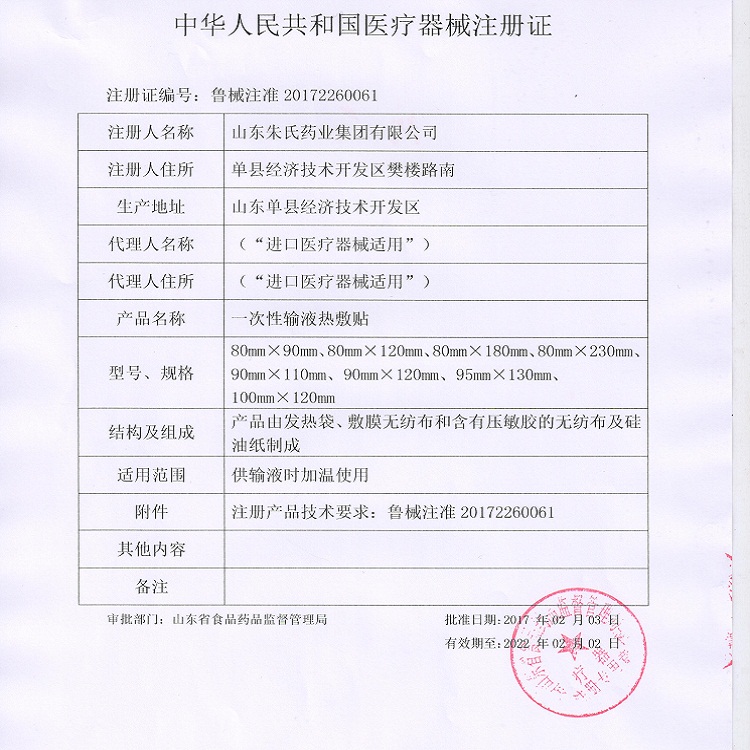 批准文号: 鲁械注准20172260061 【验证真伪】
